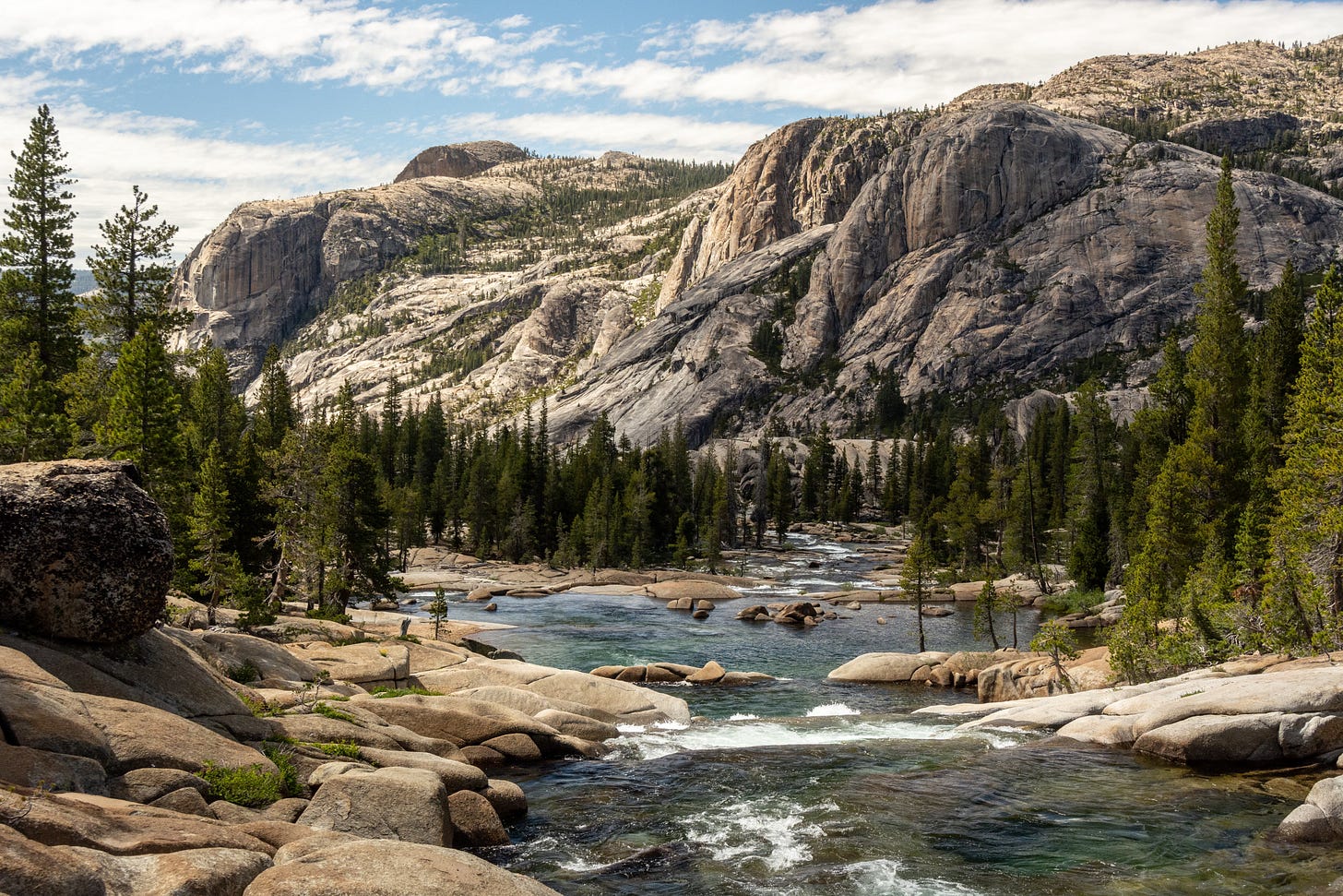 In August 1996, my 12 year old daughter and I set out from Tuolumne Meadows to follow the river to Glen Aulin High Sierra Camp to stay two nights.1 I often revisit those moments —in summer, in August. I'm grateful for a brief journal that saved the details or all there would be left are memory's broad strokes. We got an early start on the 6.3 mile hike, never far from the river, walking through meadows of late wildflowers and then lodgepole pine forest, sometimes crossing broad granite slabs and catching vistas of granite domes through the trees. Since 1984, the Tuolumne has been designated a Wild and Scenic River, and we were headed toward some of her wildest and most beautiful country, the Grand Canyon of the Tuolumne.2