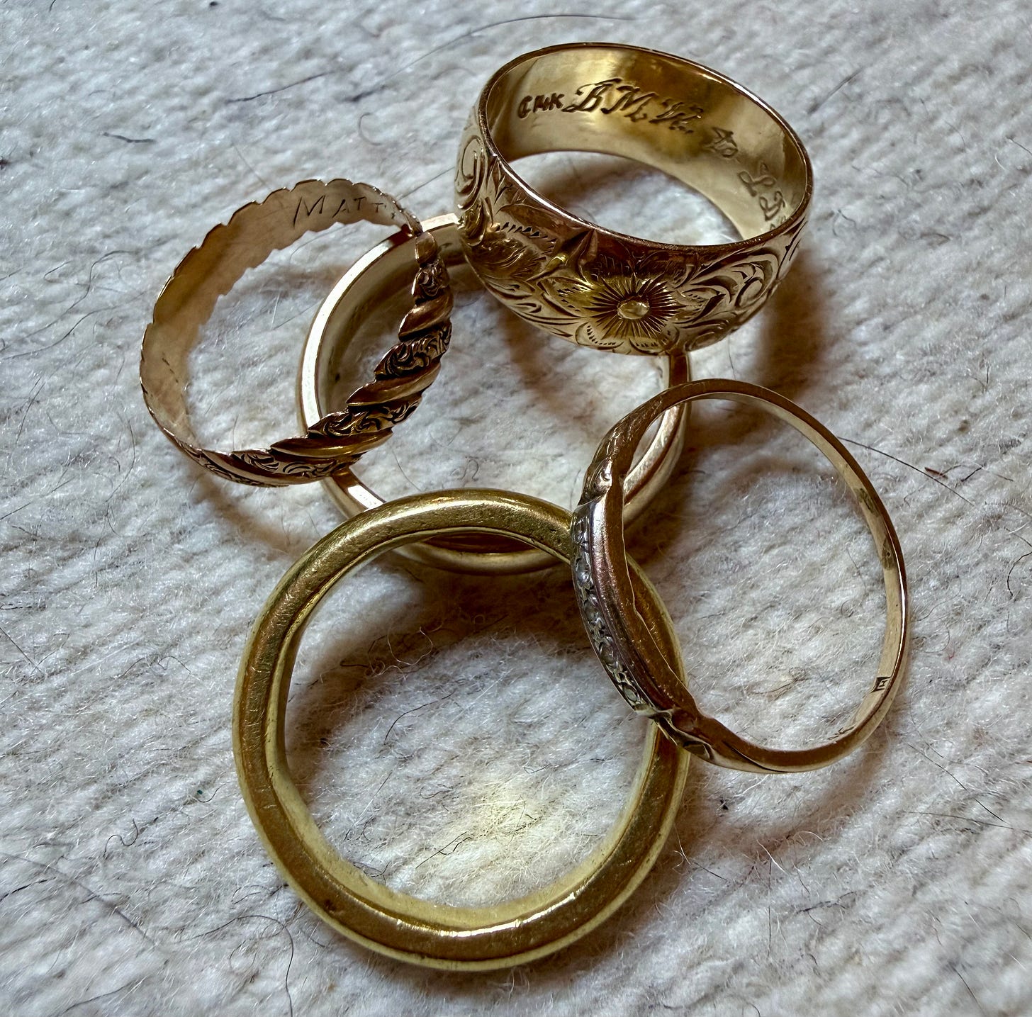 Memory is so fragile. I don’t know if you have noticed, but it changes as the years go by. Have you had the experience of talking to a sibling about an event when both of you were present? The memories are different and they further modify with age and experience and the fragile minds where they are stored. Imagination is equally unreliable. I can hold these gold rings, tangible metal, but can I know the ‘truth’ of their histories, even those of my own making. So I imagine and tell you a story and it lets us wonder together.